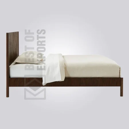 Introduce a touch of architectural interest to your bedroom with the Grooved Wooden Panel Bed. This beautifully crafted bed showcases a rich wood finish and a meticulously detailed fluted design on both the headboard and footboard. The clean lines and minimalist silhouette are complemented by the textured surface, adding depth and sophistication to your sleep space.