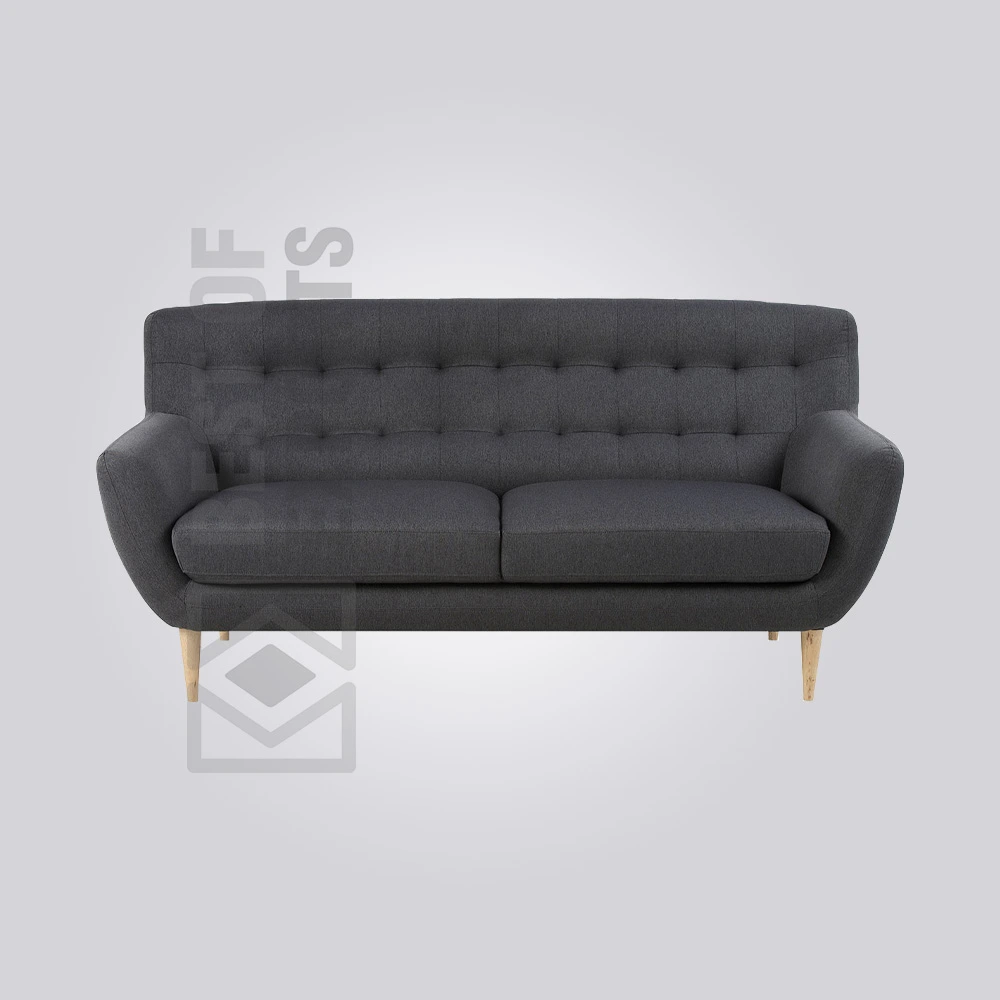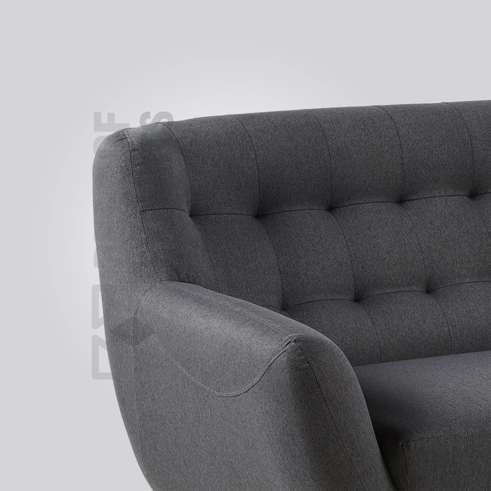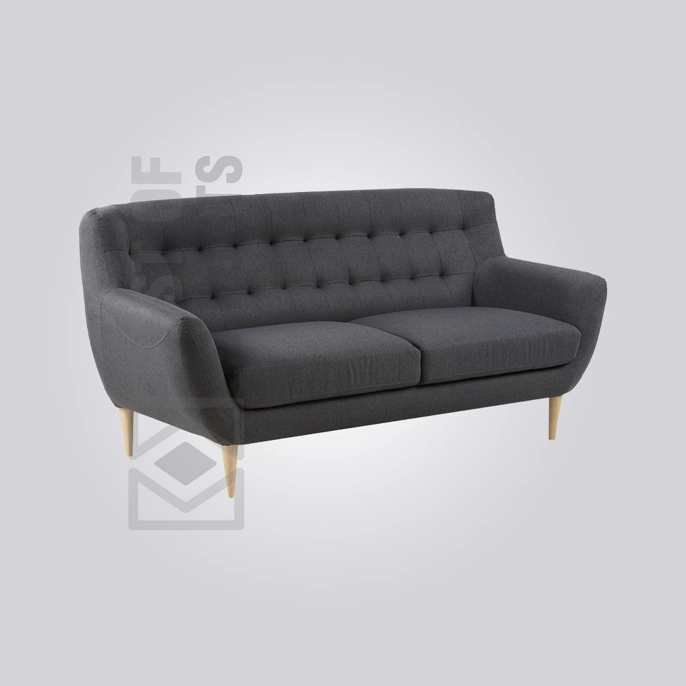 Bring a touch of mid-century modern charm to your space with this charcoal grey Jeses Mid-Century Sofa. Its gently curved silhouette and button-tufted backrest offer stylish comfort. Supported by slender, angled wooden legs, this loveseat is perfect for smaller restaurant areas, blending retro-inspired aesthetics with contemporary comfort.