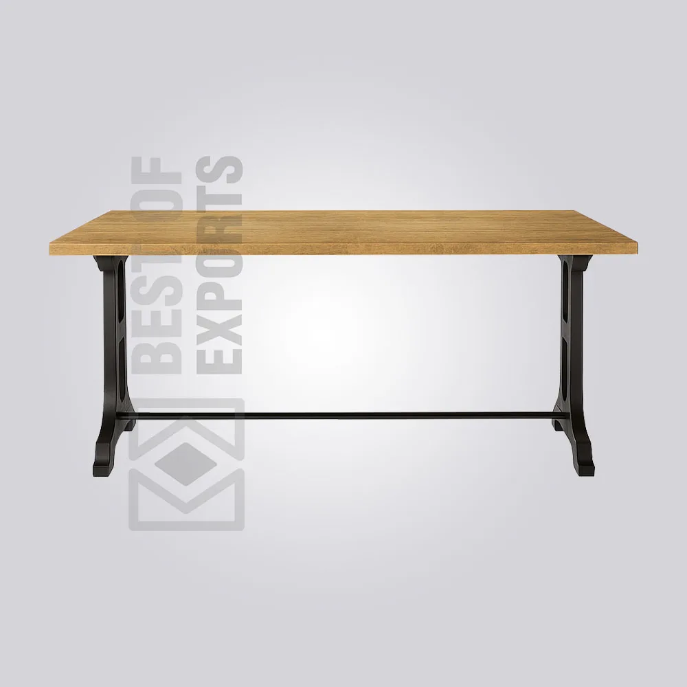- Two heavy-duty, H-shaped cast-iron trestle bases provide a strong, stable foundation and a striking industrial look.